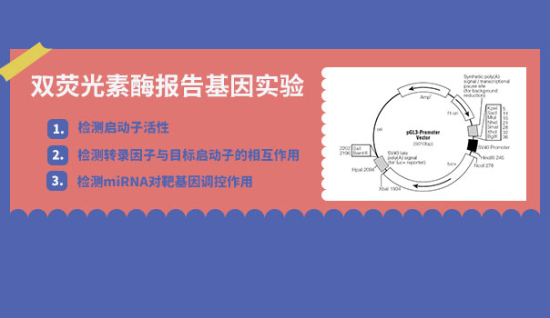 雙熒光素酶報告基因分析通常以螢火蟲熒光素酶為報告基因,以海腎熒光素酶為內(nèi)參基因。所構(gòu)成的報告系統(tǒng)具有靈敏度高、動態(tài)范圍廣、應(yīng)用靈活等優(yōu)勢,廣泛應(yīng)用于基因調(diào)控、非編碼RNA靶向互作等研究領(lǐng)域。