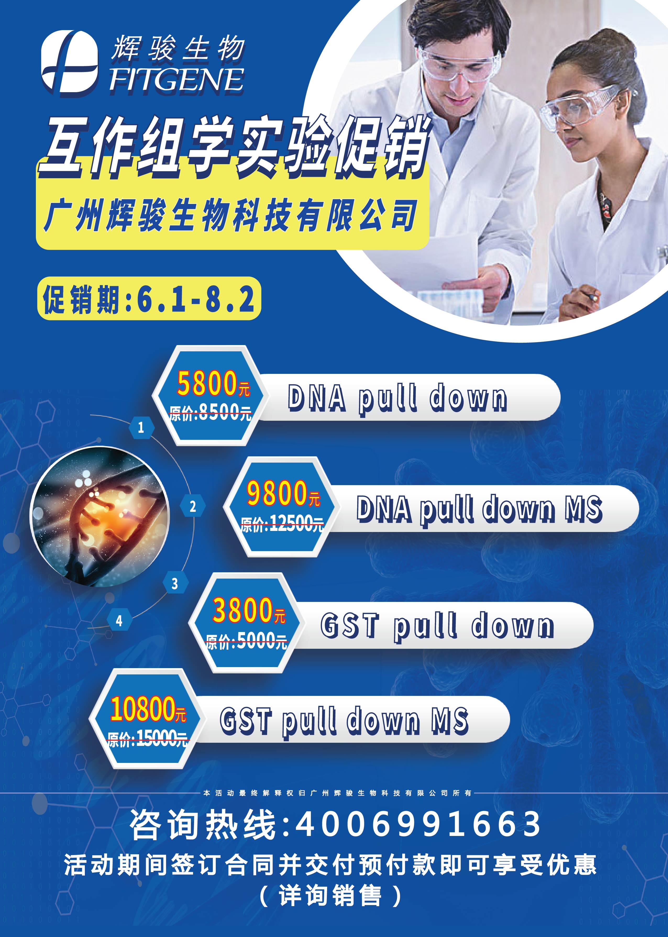 輝駿生物互作組學(xué)實驗大促銷,需要DNA pull down、DNA pull down MS、GST pull down、GST pull down MS實驗的小伙伴趕緊聯(lián)系我們吧!??!
