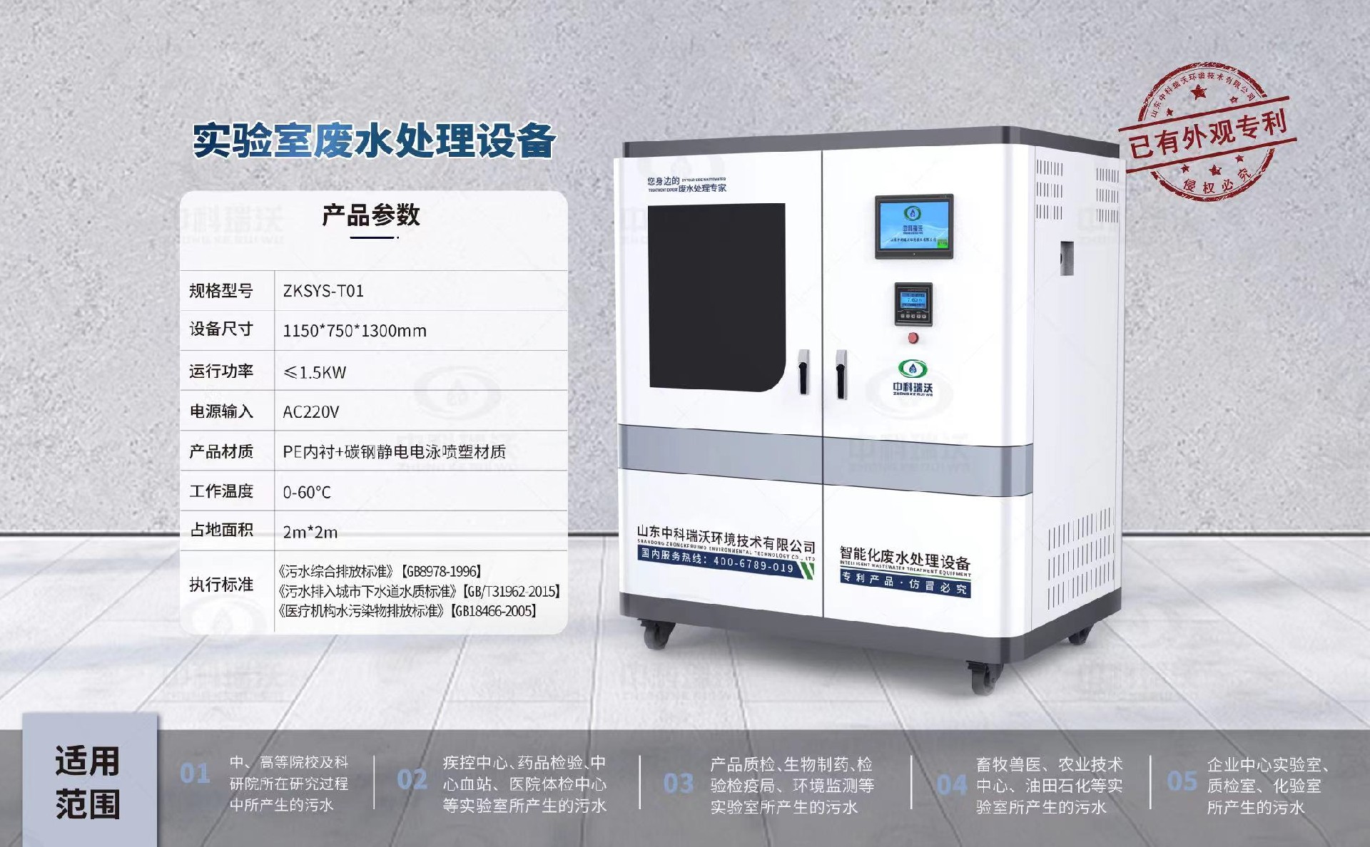 該設(shè)備被廣泛應(yīng)用于中、高院校、科研院所、醫(yī)療機構(gòu)、生物制藥、疾控中心、環(huán)監(jiān)、產(chǎn)品質(zhì)檢、檢疫檢驗、藥品檢驗、血站、畜牧、畜牧獸醫(yī)、石油化工、企業(yè)等實驗室、化驗室的有機類廢水處理,憑借穩(wěn)定性能,優(yōu)質(zhì)處理結(jié)果,受到廣大客戶的一直好評。